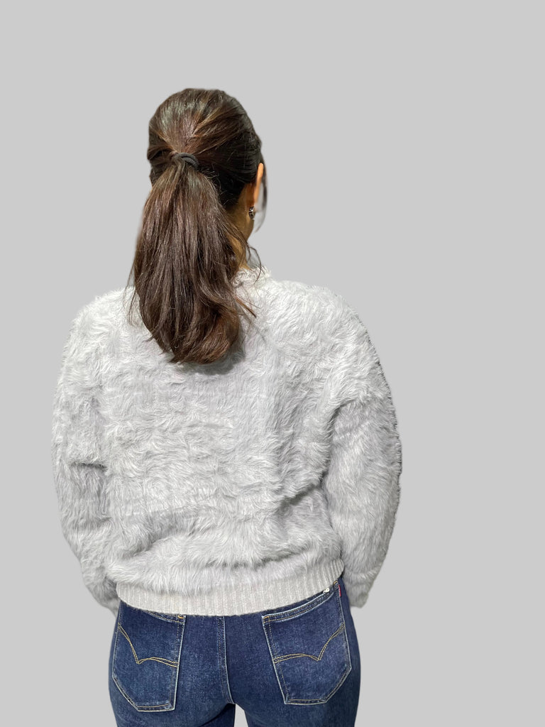 İthal Tasarım Angora Midi Hırka Gri