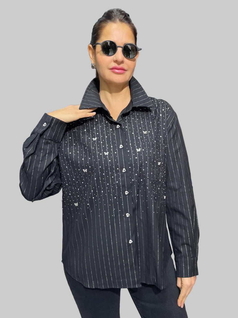 İthal Tasarım Taşlı Gömlek