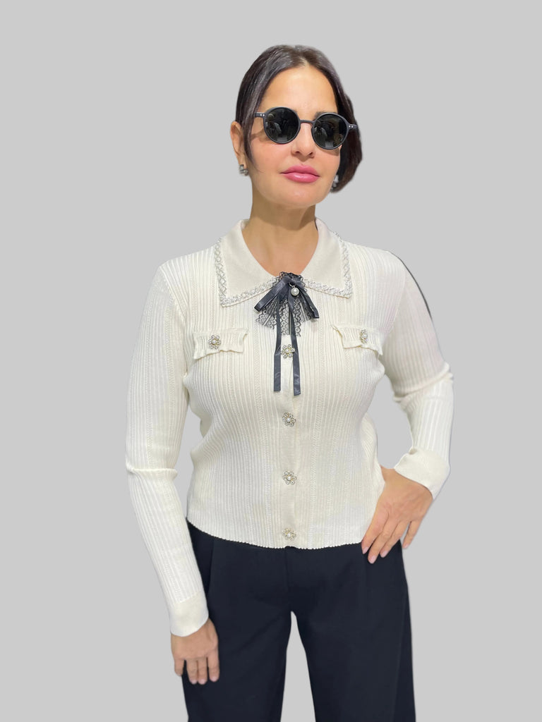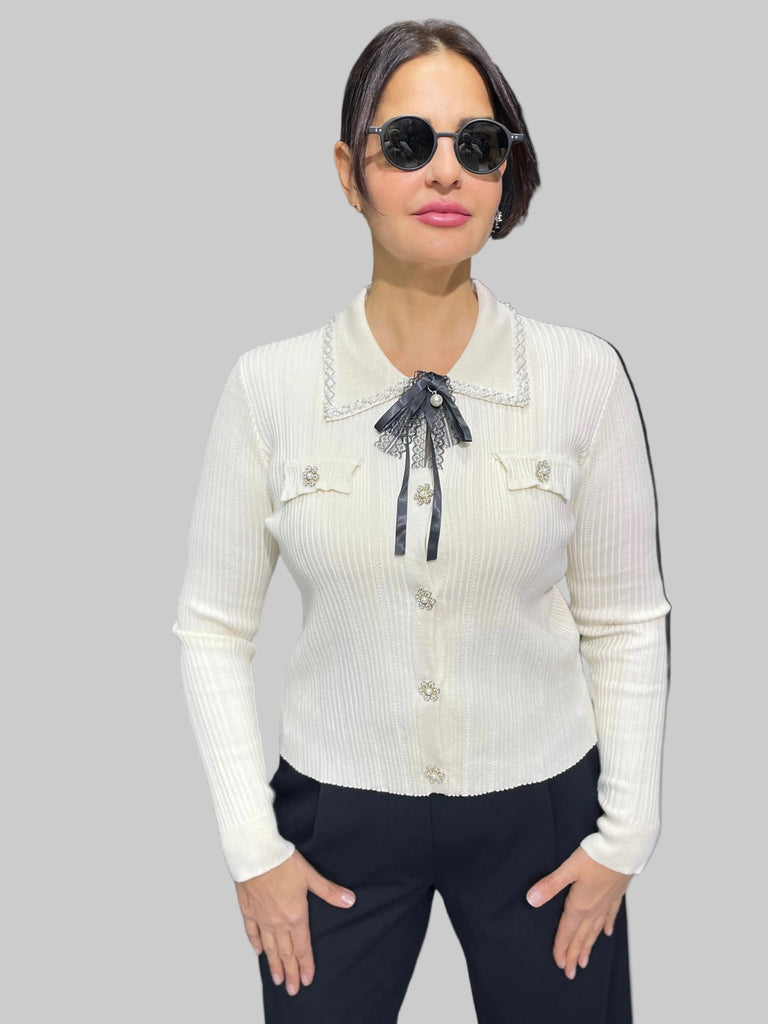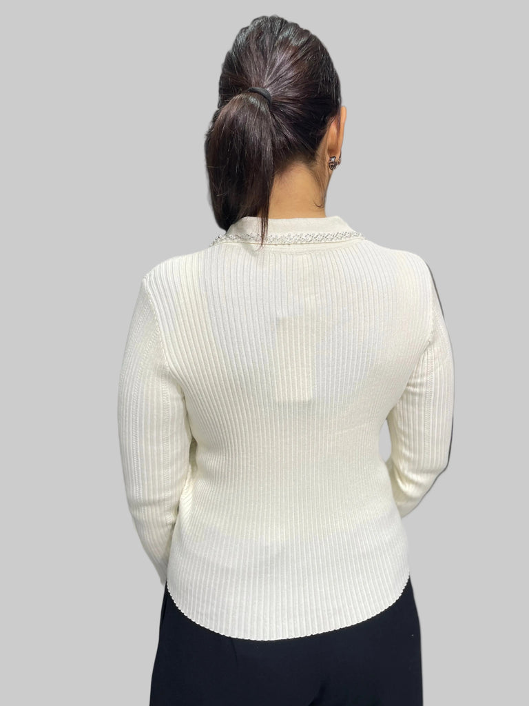 İthal Tasarım Taşlı Yakalı Hırka