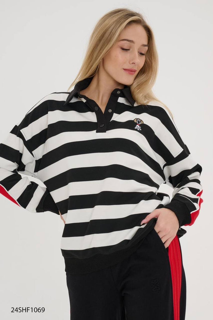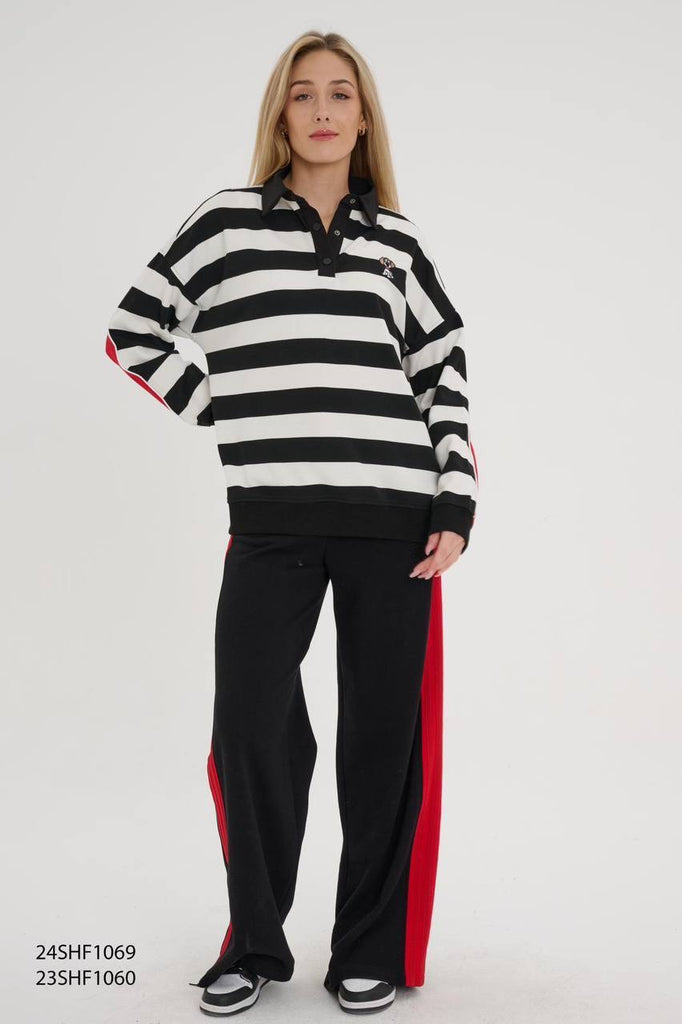 Tasarım Çizgili Siyah Kırmızı Sweat