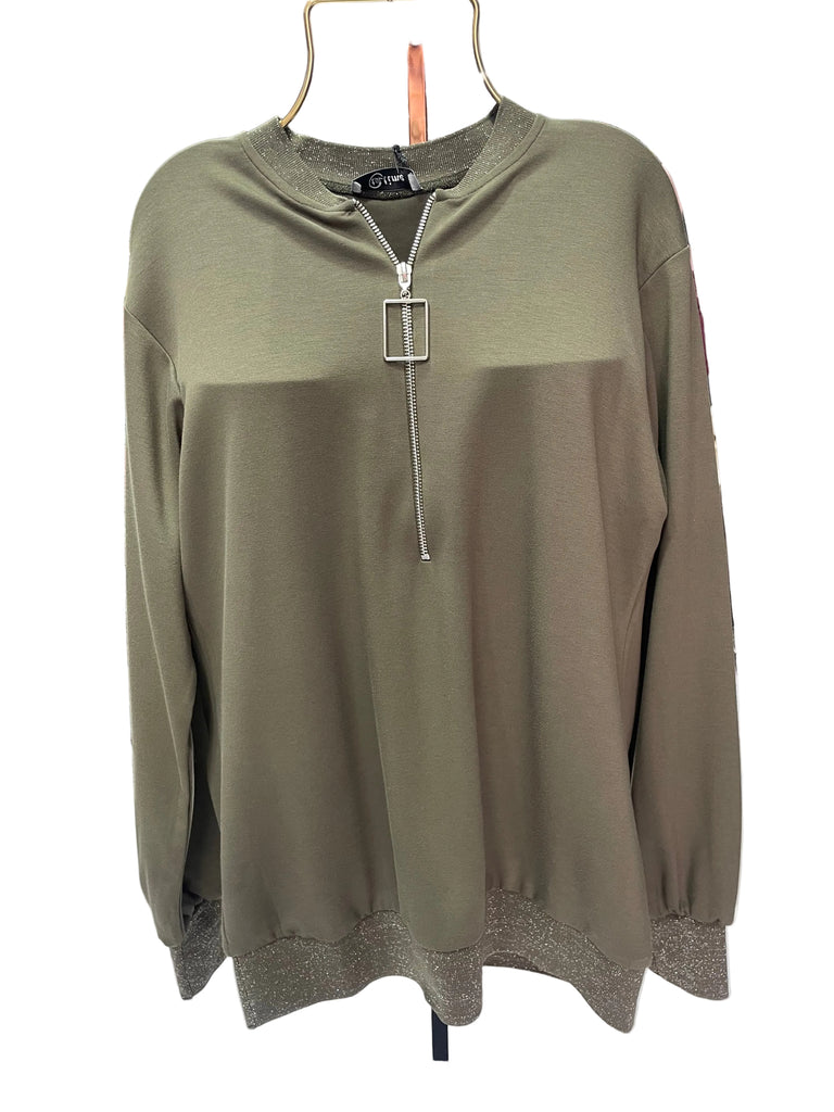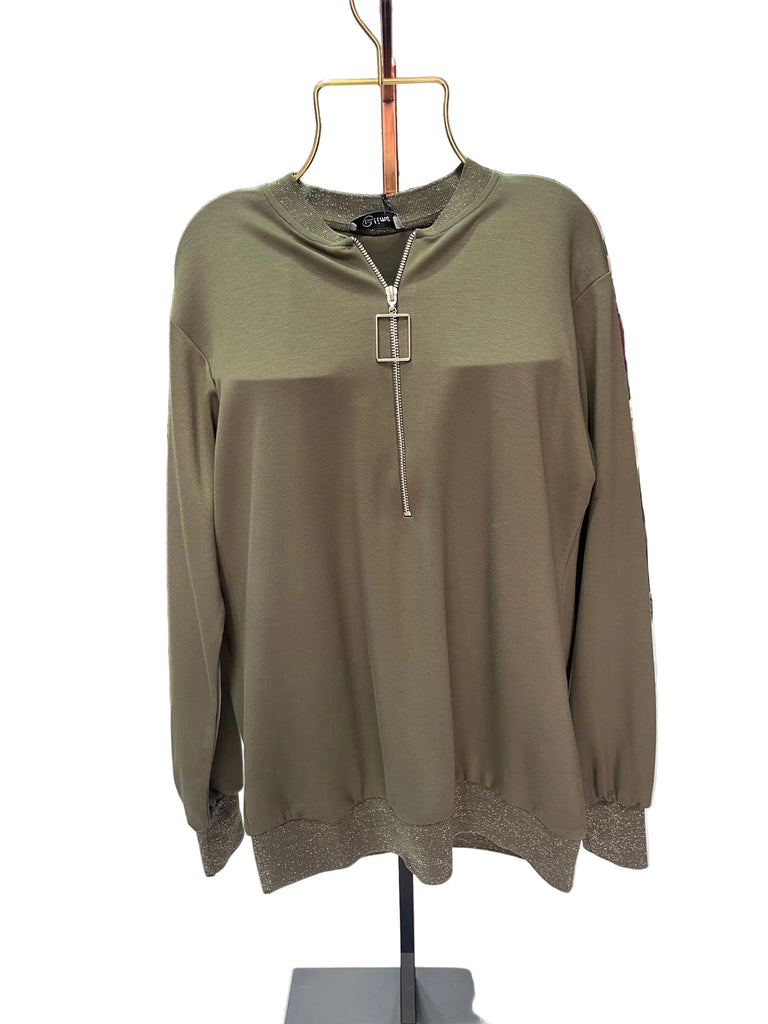Tasarım Harf Fermuarlı Ribanalı Sweat
