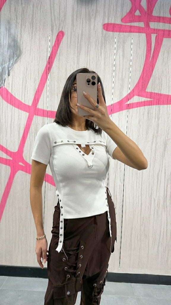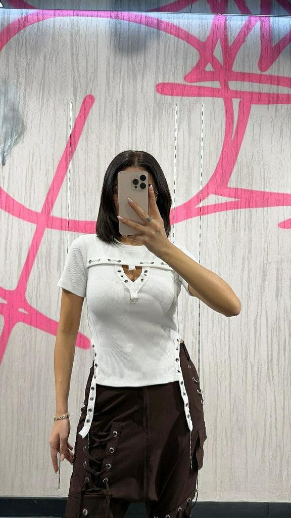 Tasarım Kalp Yaka Dekolteli Tişört