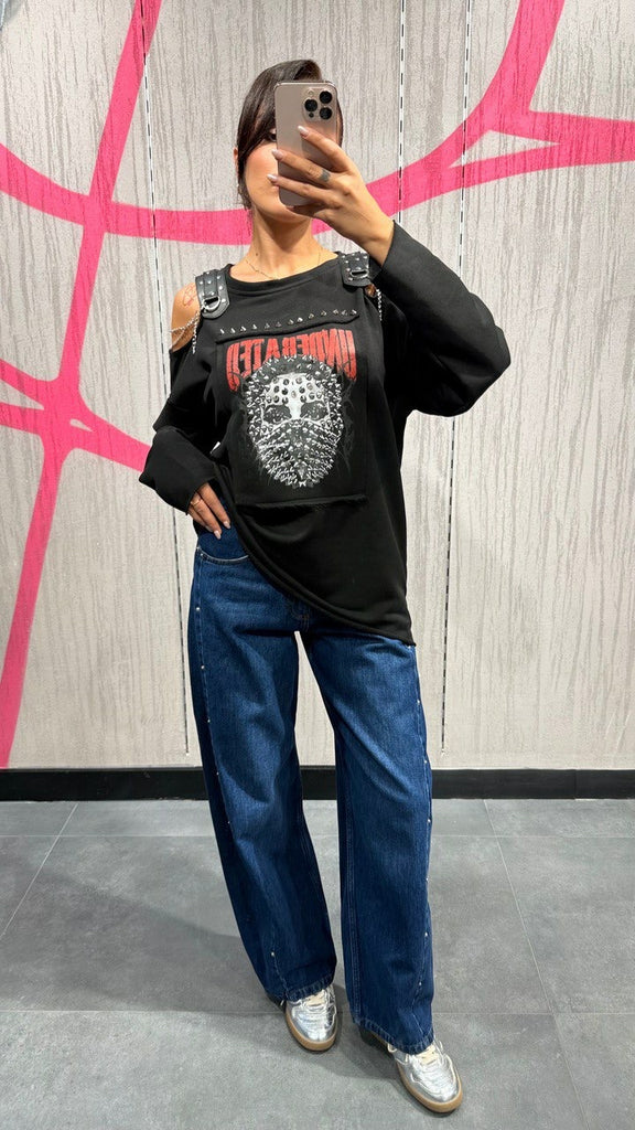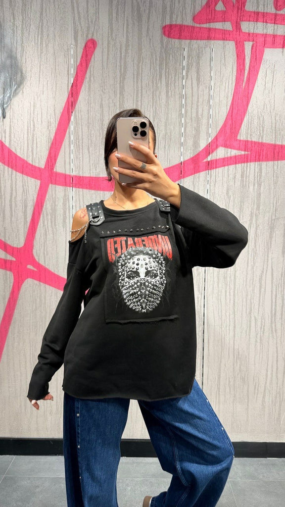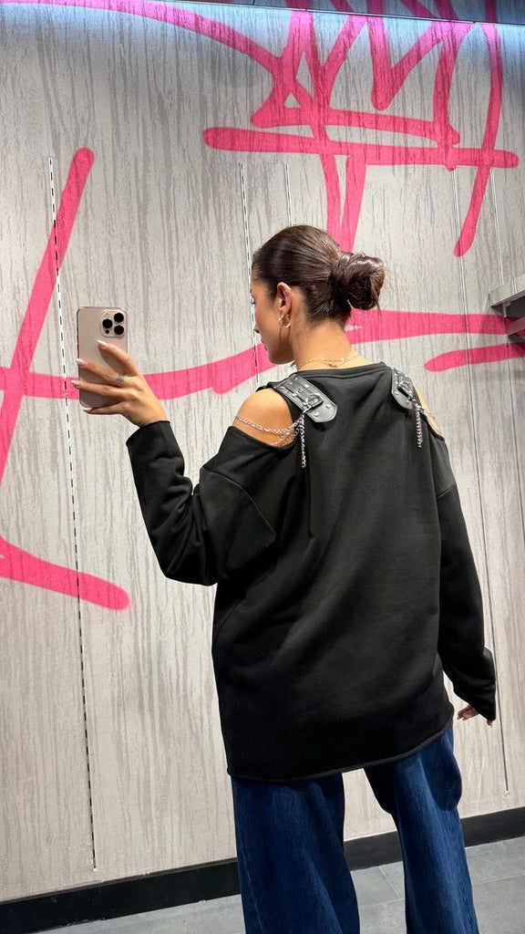 Tasarım Zımbalı Omuz Dekolteli Sweat